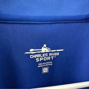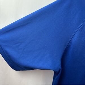 This US Air Force Polo Shirt in medium size features a solid blue color with white and gray accents, showcasing the military pilot golf theme with an embroidered logo. Made of polyester with a Dri Fit fabric type, this short sleeve shirt has a collared neckline, button closure, and point collar style. Perfect for casual occasions, this regular fit polo shirt is suitable for all seasons and is a great choice for those who appreciate military-themed apparel. Ideal for both men and USAF veterans, this polo shirt combines style and comfort for everyday wear.