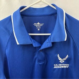 US Air Force Polo Shirt Medium Blue White Gray Logo Military Pilot Golf Mens