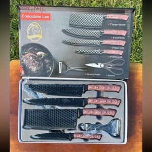 Cleaver, knives, scissors, and peeler 6-piece set.