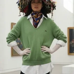 This classic vintage Izod V-neck sweater in a vibrant green is a perfect addition to any modern, trend-conscious wardrobe. This late 70s/80s piece taps directly into the sought-after "Old Money" and "Dark Academia" aesthetics with its timeless style and iconic alligator logo.