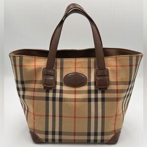 Burberry Vintage Nova Check Leather and Canvas Tote Bag