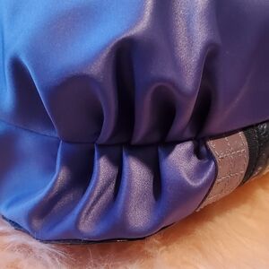 Material: Satin with patent leather handles and leather/fabric accents
