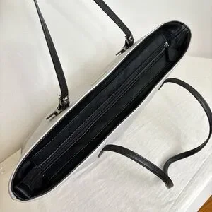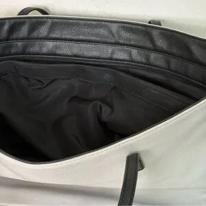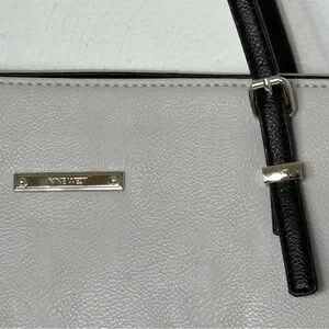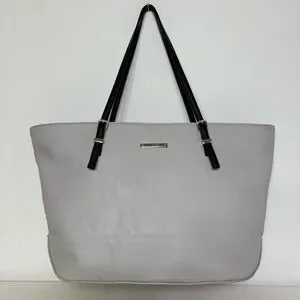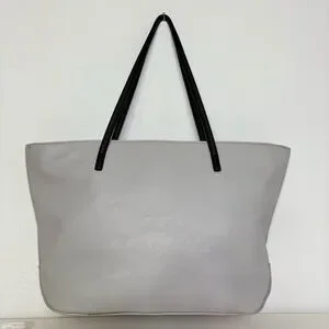 NINE WEST Vintage 90s Y2K faux leather light grey minimalist neutral tote bag