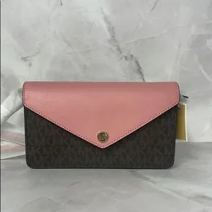 Michael Kors Small Envelope Crossbody Pink & Brown MK Signature Logo Primrose