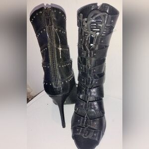 Schutz Brianna Heel Lace-up Studded Peep Toe Booties 7.5B