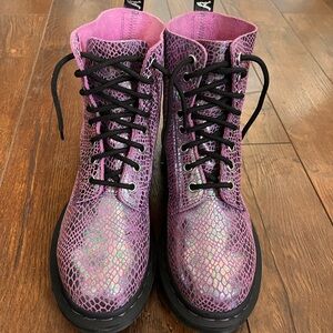 Dr. Martens Pascal 1460 Metallic Purple Snake Rare Find Women’s Combat Boots