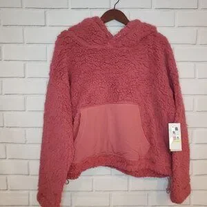 NWT Zella pink faux Shearling pullover hoodie Size Large