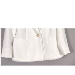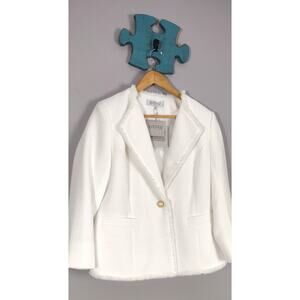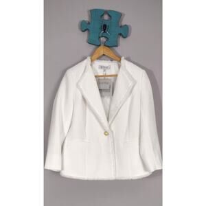 Kasper Women's Tweed One-Button Fringe Blazer White Size 6 NWT
