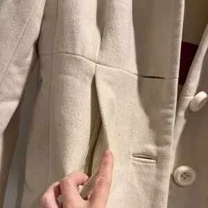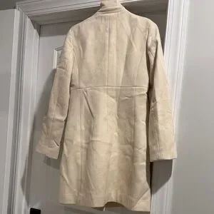 Chic cream wool trench coat with button closure. Timeless design for versatile wear.
