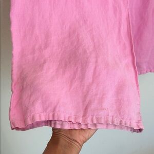 Vintage Y2K Juicy Couture linen drawstring pants in soft pink. Lightweight and breathable with a relaxed straight-leg fit and elastic waist for comfort. Early “Made in the Glamorous U.S.A.” Juicy era.
