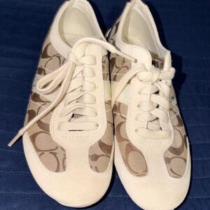Coach Tan and Cream Patterned Sneakers