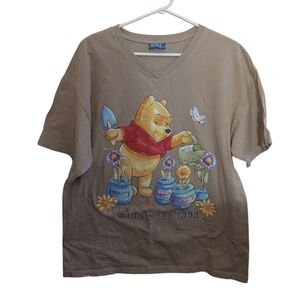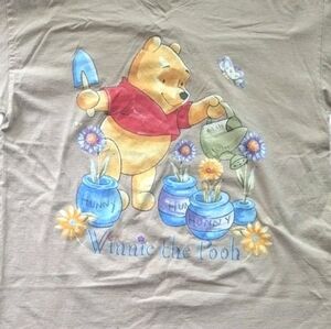 Movie, Pooh Bear, Honeypots, Flowers, Spring, Vintage, 90's, Tan, Short Sleeve, Crew Neck,
