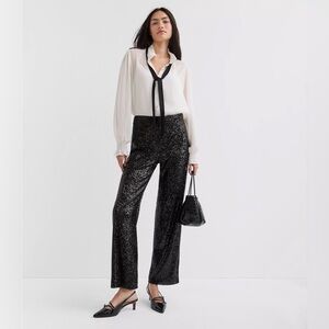 Dazzle in these black sequin wide leg pants by Chico's. Ideal for evening wear.