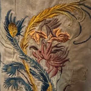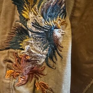 Women's distressed A-Line Skirt in Tan with embroidery and so many details! EUC