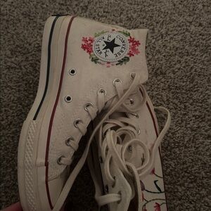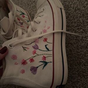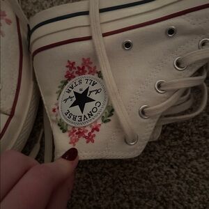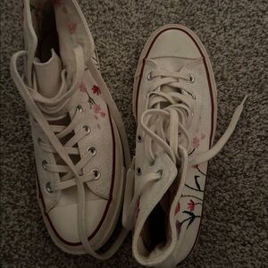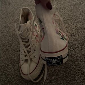 Charming white high-tops with floral details. Iconic Converse style. I wore one time, bought them custom. Beautiful.