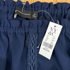 New York & Company Navy Off-Shoulder Blouse Boho Coquette NWT