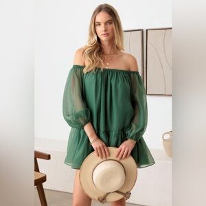 NWT-Organza Long Off Shoulder Wide Sleeve Mini Dress