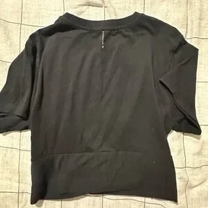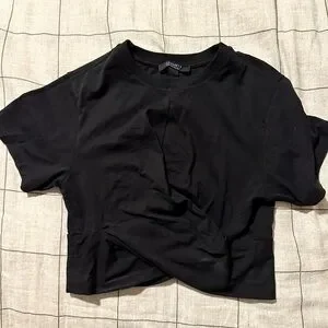 All Saints Black Crop Twisted Front Hem T-Shirt