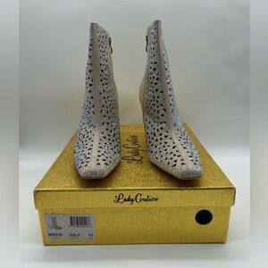 Lady Couture Breeze Gold Rhinestone Cutout Ankle Booties Sculpted Heel Size 12