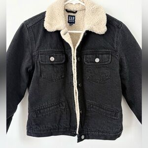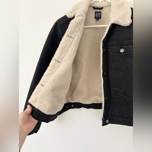 Gap Black Denim Jacket Cream Sherpa Lined Size Small