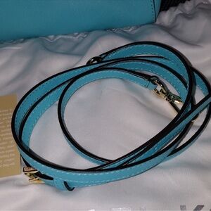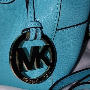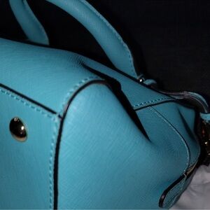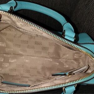 Elegant Michael Kors satchel in striking blue. Gold accents and detachable strap. Ideal for versatile use. Has some tags but not price tag. Has never been used.