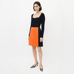 Dolce & Gabbana black skirt featuring orange panelling, and zip at back with hook and eye closure. This skirt is absolutely stunning and perfect addition to your wardrobe! It’s classy yet chic and the bold orange is this perfect pop of color!