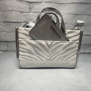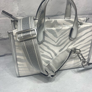 Michael Kors Gigi Small Crossbody Bag Silver Metallic Zebra Print