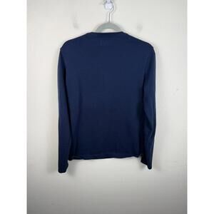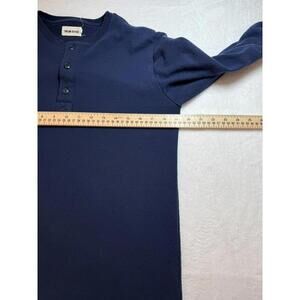 The Taylor Stitch Shirt in size 38 Small is a solid blue Henley style long pullover made from a blend of polyester and cotton. This T-shirt is machine washable and suitable for all seasons, featuring a classic design with a comfortable fit for men. With its high-quality construction and timeless appeal, this Taylor Stitch shirt is a versatile and stylish addition to any wardrobe.