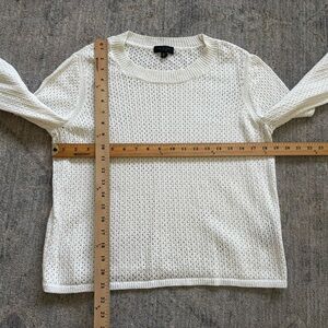 RAG & BONE White Crew Neck Sweater with Perforated/Open Knit Texture Trendy Chic