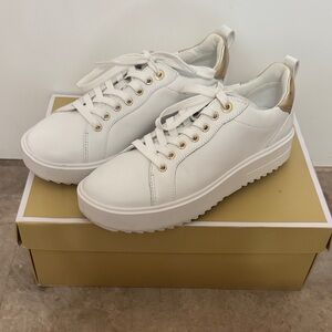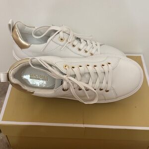 Chic Emmett Leather Sneakers by Michael Kors with gold detailing.
