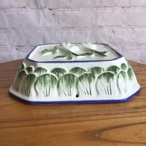 Elevate your space with this hand painted vintage Intrada ceramic wall decor, showcasing a captivating mix of green and blue tones. This piece is designed to add a touch of sophistication and style to any setting. The unique color combination and timeless design makes it a perfect addition to your home decor. Made in Italy and hand signed by the artist. This piece measures approximately 8 1/2” wide, 8 1/2” long, 2” deep. Great vintage condition. No chips, cracks or repairs. Smoke free home.