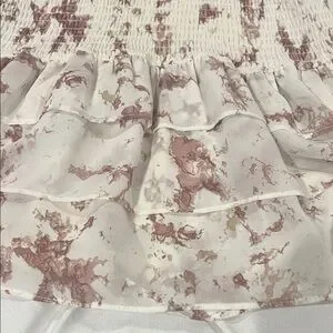 What are the stress for a few hours . Dresses in perfect brand new . Elegant dress with delicate ruffles. Features soft floral patterns. Ideal for warm weather.