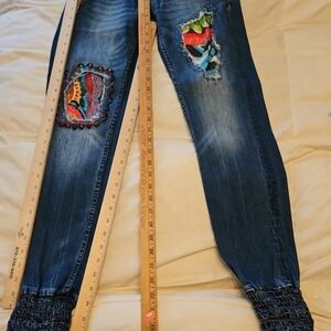Unique boyfriend jeans with colorful patchwork and embroidery. Eye-catching design by Desigual.
