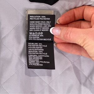 Fabric: Shell: 55% polyester, 45% recycled polyester; Lining: 45% recycled polyester, 41% polyester, 14% elastane; Insulation: 100% recycled polyester.