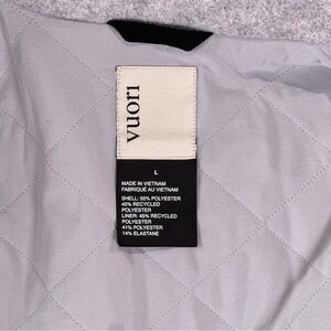 Notable features: Brushed knit exterior, quilted insulated interior lining, open front design, notched lapel collar, longline length, side pockets, subtle woven Vuori logo patch.