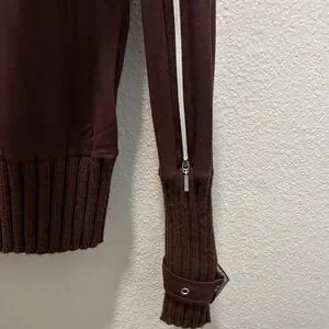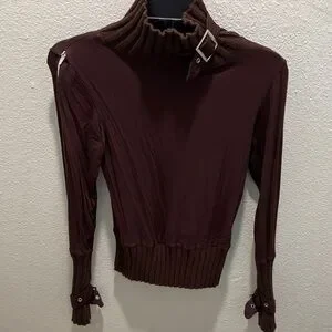 Vintage Yoki Brown Turtleneck Sweater with zippers and buckles