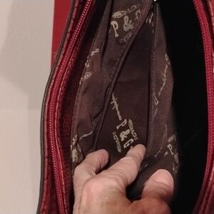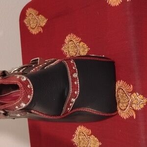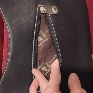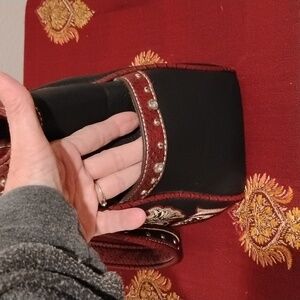 This is part of the P&G Collection...Come on Cowgirls Woo Hoo🤠 Large Cowboy/Cowgirl Style bag features a striking black and red design, with a Bling Bling Rhinestone Belt Buckle on the front and studded straps. Perfect with those black cowboy boots ya have stashed 😉
