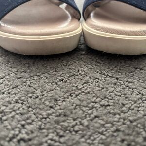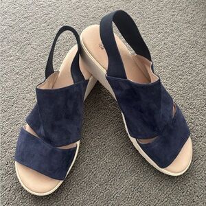 Chic navy suede sandals with slingback design. Comfortable and stylish for any outing.