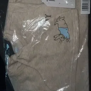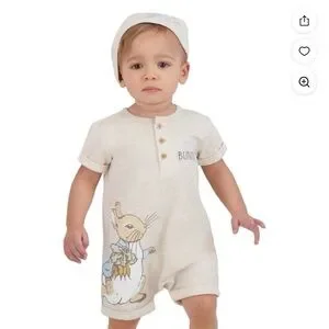Cute beige romper featuring a bunny design. Comes with a matching hat. Perfect for a spring or Easter 🐣.