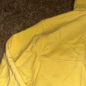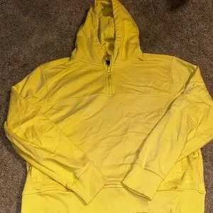 Bright yellow hoodie with a cozy fit. Ideal for casual wear and layering.