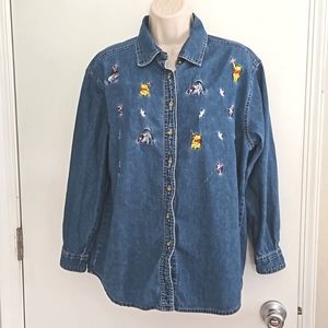 Vintage Disney Winnie-the-Pooh & Friends Embroidered Chambray Shirt Size…