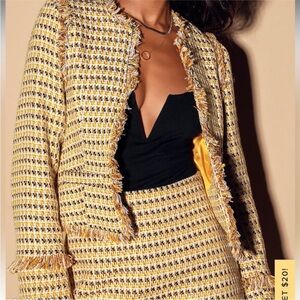 Lulu's Boss Girl Yellow Multi Tweed Fringe Jacket Sz Large NWT