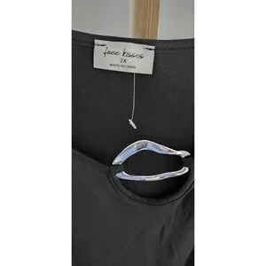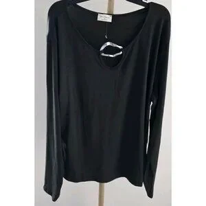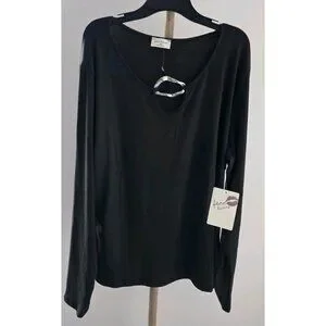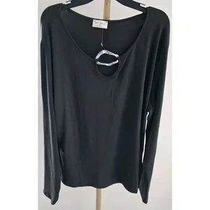 Free Kisses Black Long Sleeve Top Metal Accent Stretch Plus Size 2X