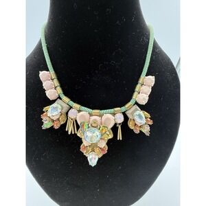 J.Crew Dragonfly Crystal Statement Necklace Multi-Color Light Gold Ox Leather