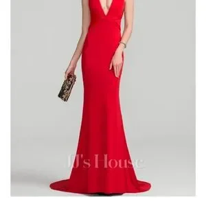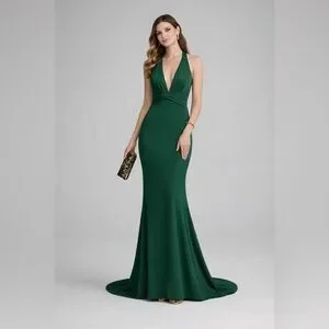 Elegant Green Backless Gown with Plunge Neckline for Cocktail