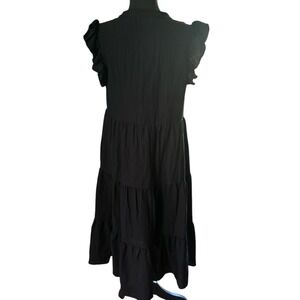 Entro black midi dress, tiered , flutter sleeve, lined, great condition no issues, size medium. See photos for more details and measurements.