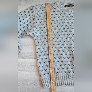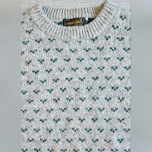Vintage Eddie Bauer Gray Green Patterned Wool Classic Crewneck Sweater Medium