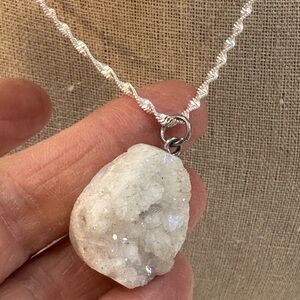 • #DruzyQuartz #RawCrystal #GeodeJewelry #BohoNecklace #NaturalStone #CrystalHealing #SparklyJewelry