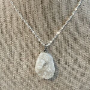 Natural White Druzy Geode 16”L Necklace - Sparkling "Frozen Snow" Raw Stone
