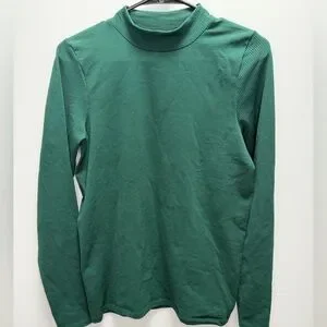 EUC Athleta Ribbed Long Sleeve Mock Neck Top | Emerald Green Size Large
